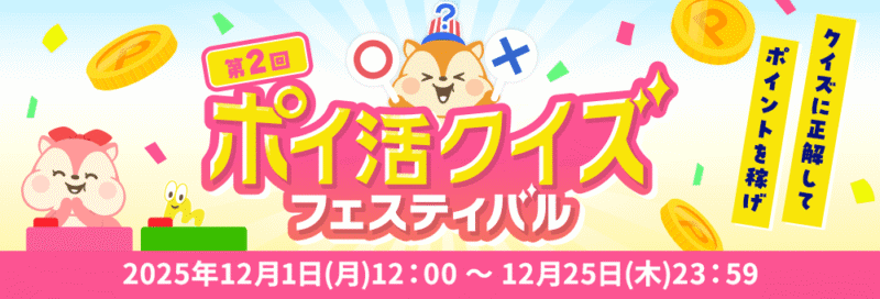 ・第2回ポイ活クイズフェスティバル:12月1日(月)~12月25日(木)まで