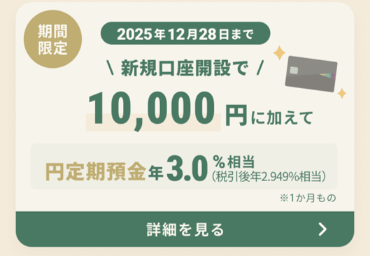 さらに、2025年12月28日(日)まで新規口座開設と10万円以上の入金のみで10,000円が進呈されるキャンペーンが実施中!お得な特典が目白押しですね(*´ω`*)