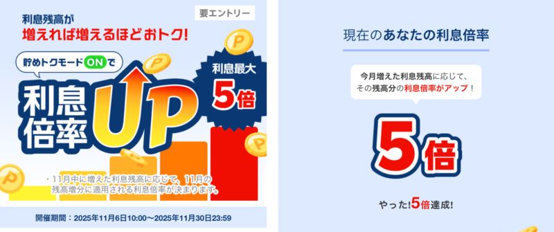 | 特典 | 11月中に増えたポイント利息残高に応じて12月の利息がUP |