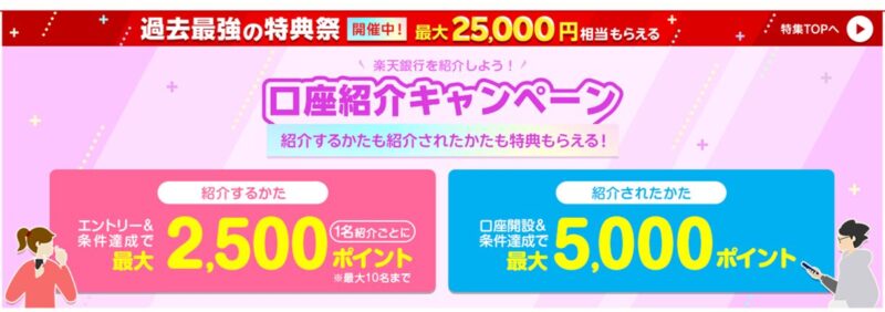 楽天銀行の友達紹介キャンペーンはこちら