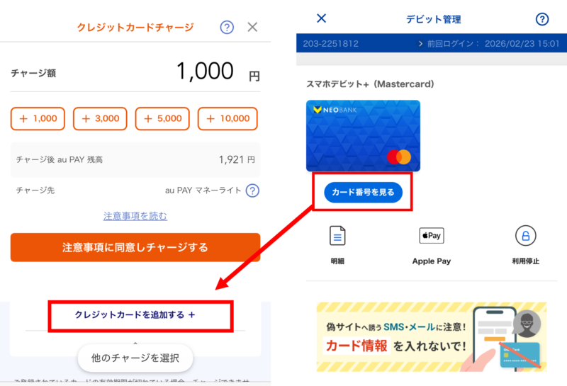 VNEOBANKデビットからauPayへチャージ